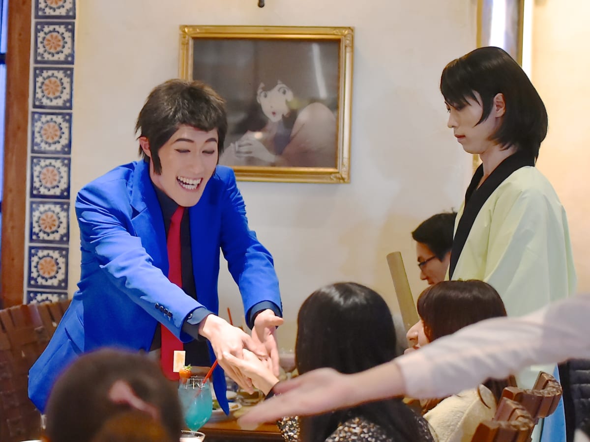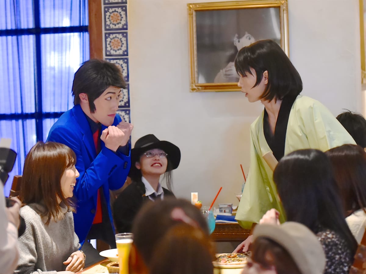 ルパン三世と石川五ェ門が各テーブルを回ってくれるのも魅力!