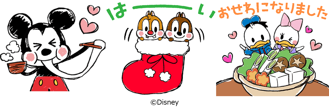 12月は、クリスマスやお正月に使える「ミッキー&フレンズ」や、毎日の会話に使いやすい『美女と野獣』のスタンプが登場☆