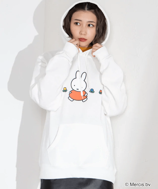 人気キャラクター「ミッフィー」がフロントにプリントされたスウェットパーカー。