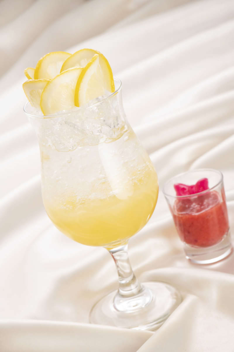スライスレモンがたっぷりと乗ったドリンクは、マンゴーシロップとクラブソーダの爽やかな味わい。