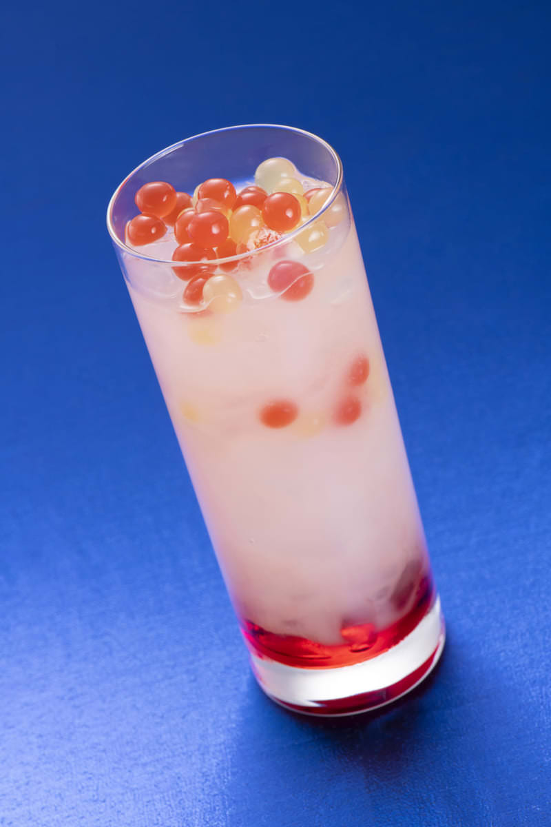 ピーチシロップ、ストロベリーシロップ、カルピスの甘酸っぱい味わいのドリンクです。