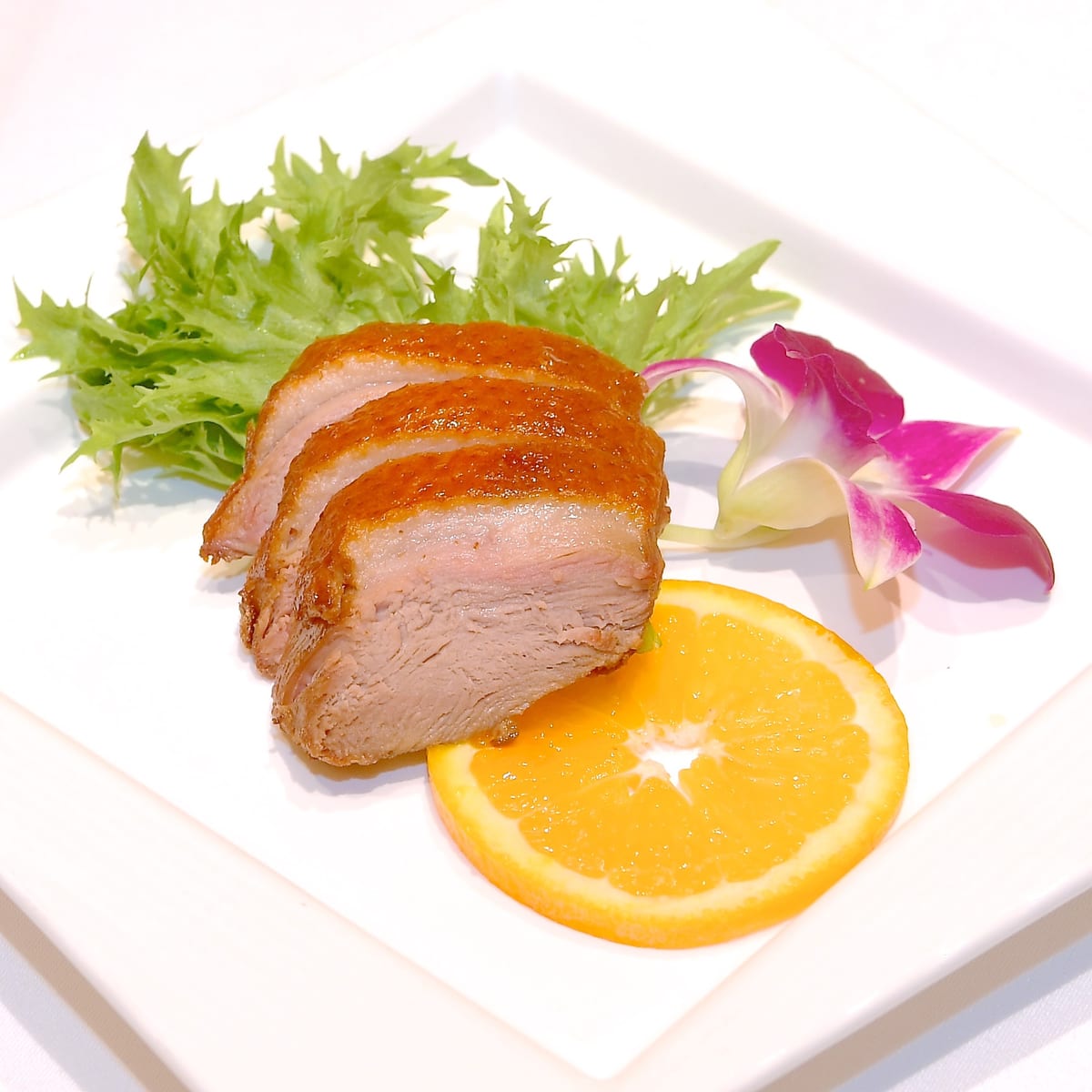 - 広東風ローストダック プラムソース 花巻添え