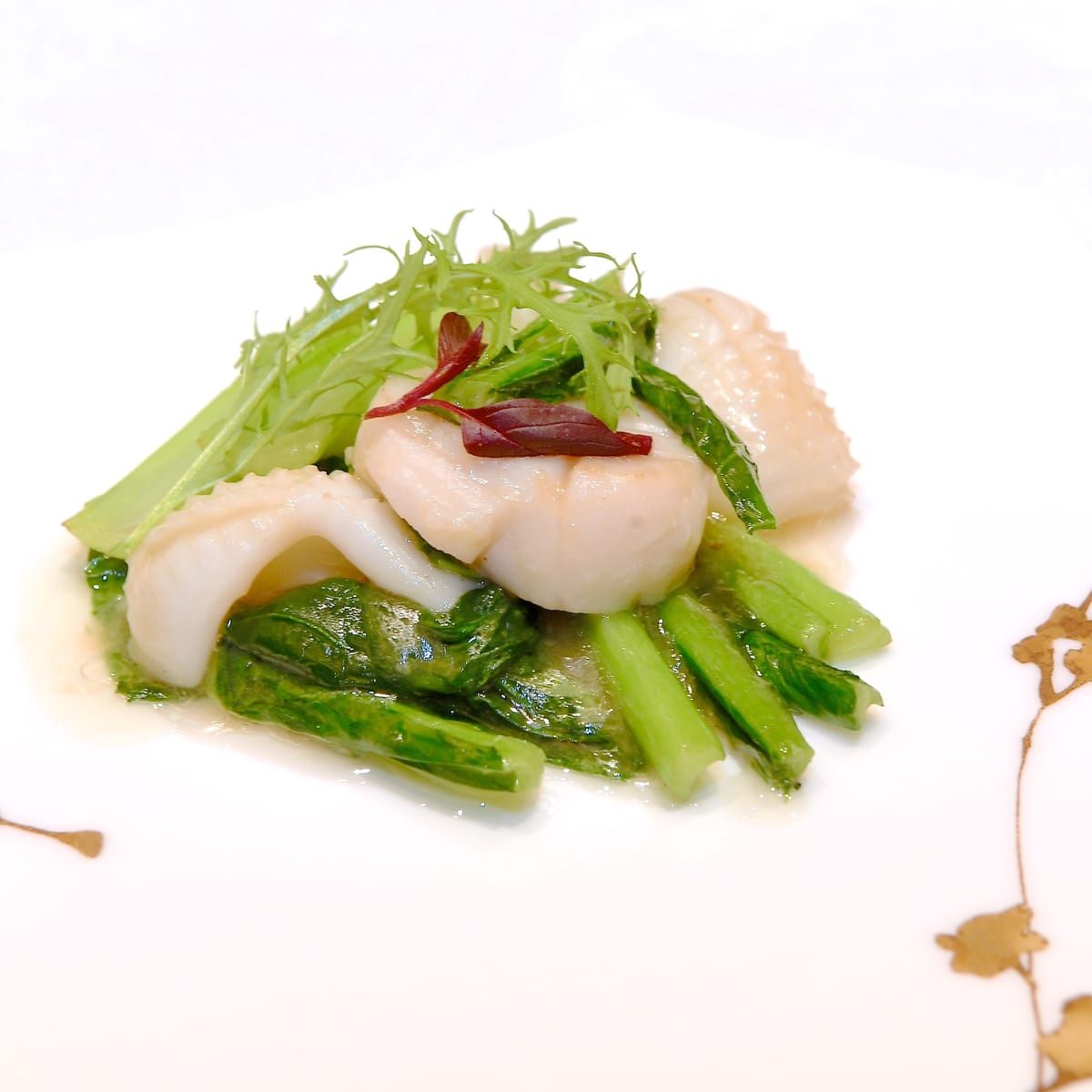 帆立貝と烏賊と野菜の炒めも広東料理らしい優しい味付け。