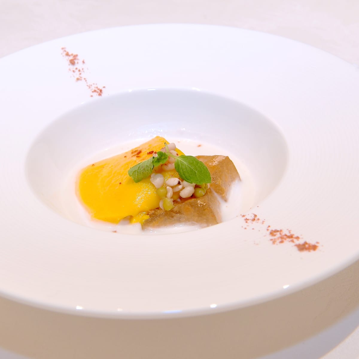 - フルーツ入り杏仁豆腐 祁門紅茶ソース