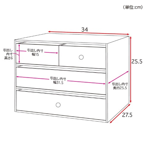 引出内寸:31.5×25.5×6(高さ)cm・2杯、15×25.5×6(高さ)cm・2杯