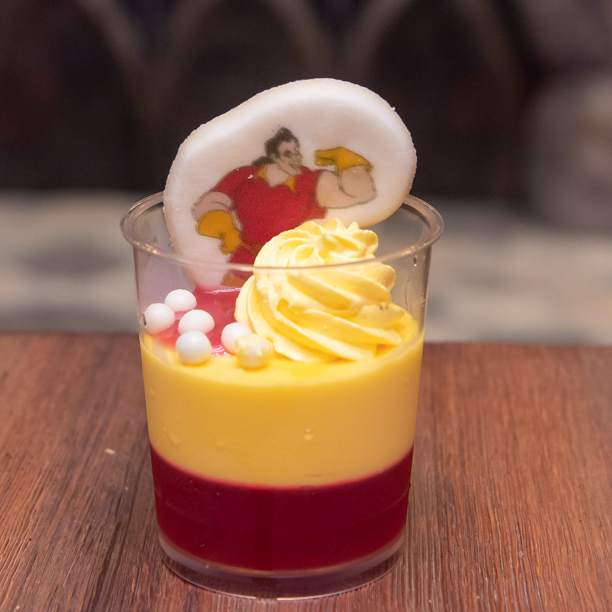 「ガストン」のクッキーがトッピングされたカップスイーツ。