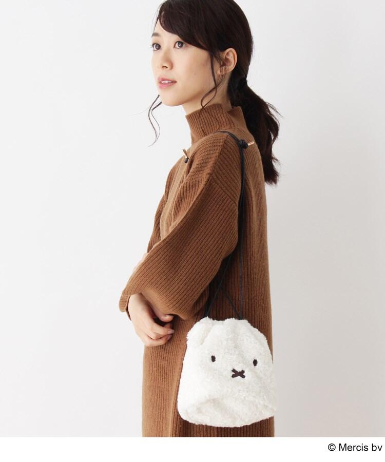 「ミッフィー」を表現した、ふっくらとしたフォルムの巾着バッグ。