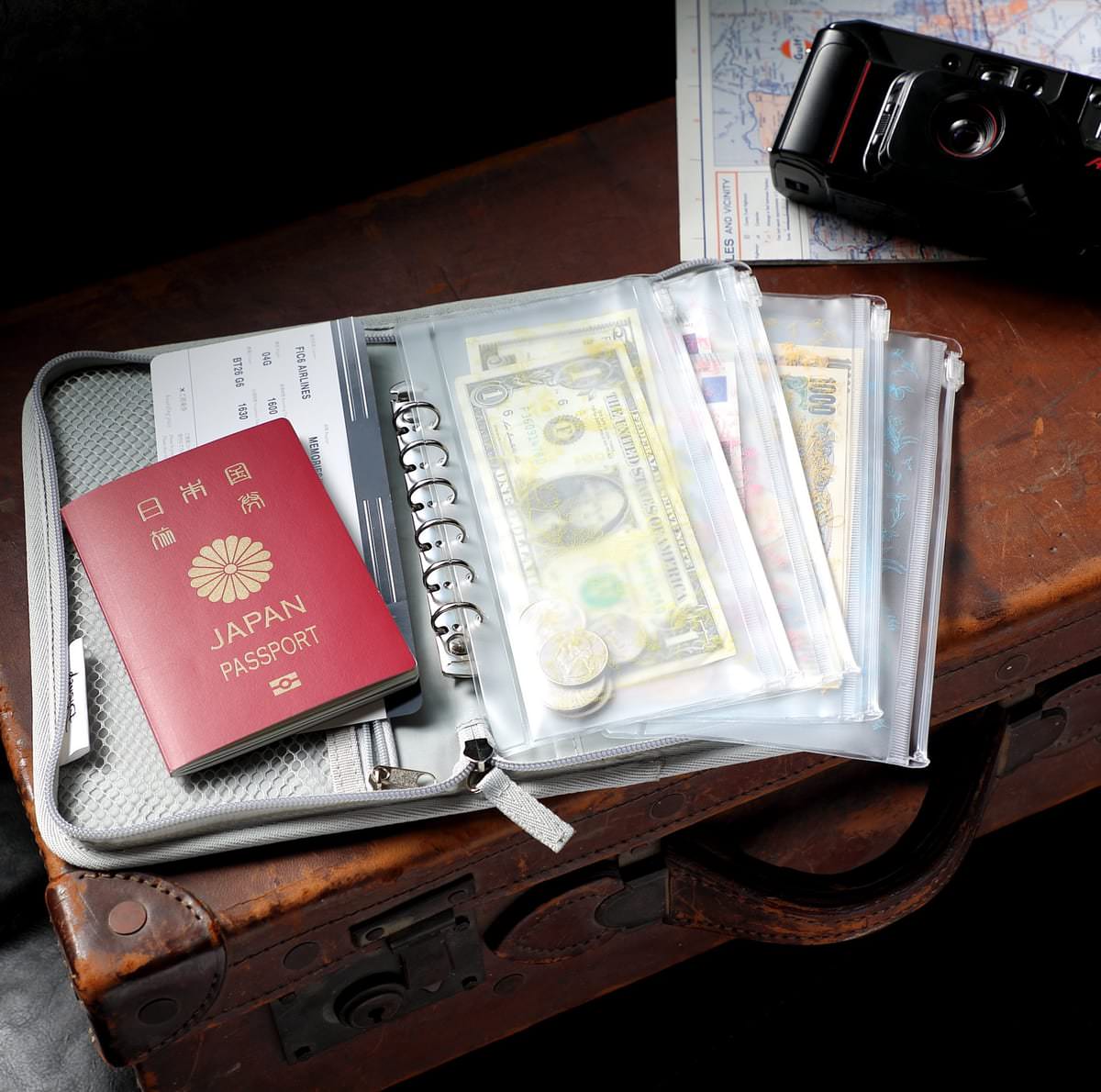毎日の家計管理以外にも、パスポートを入れて旅行用パスポートケースにしたり、お薬手帳や、トラベルポーチにしたりと幅広いシーンで大活躍!