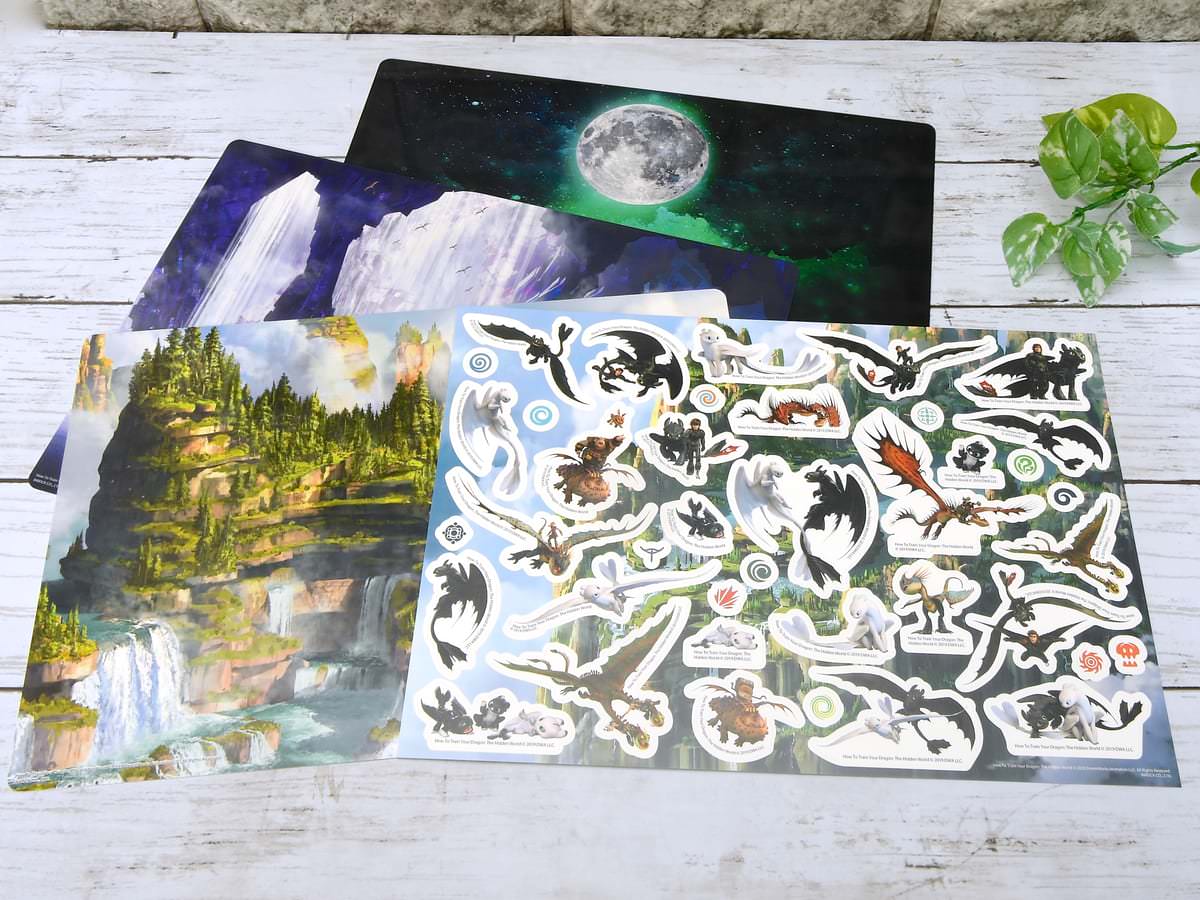 『ヒックとドラゴン 聖地への冒険』の世界観が再現された台紙は3パターン用意されます。