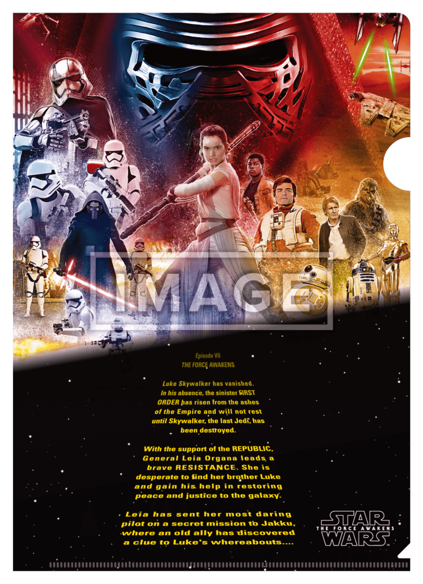 ウラ面に『スター・ウォーズ/最後のジェダイ』のアートが採用されたクリアファイルの全4種類が登場します!