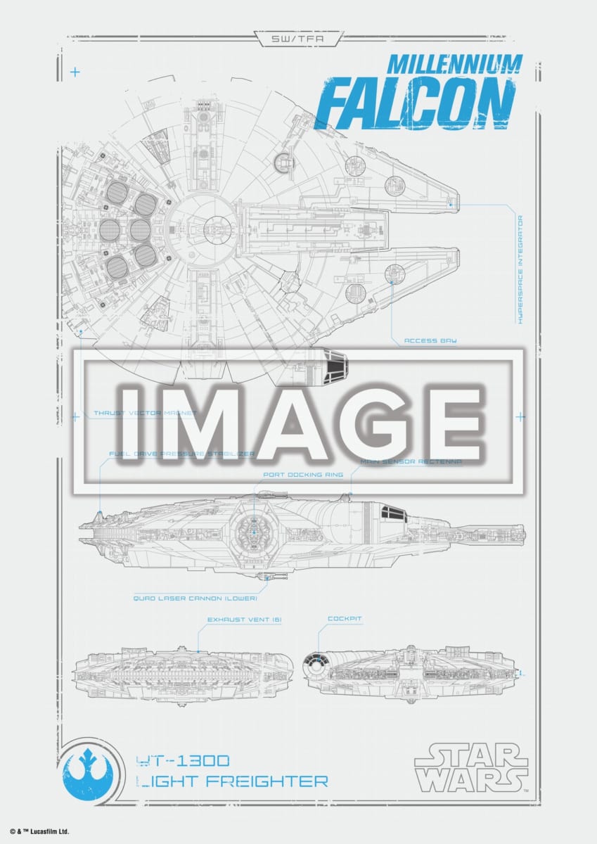 「ハン・ソロ」の愛機「ミレニアムファルコン」が線画タッチで描かれたポスター