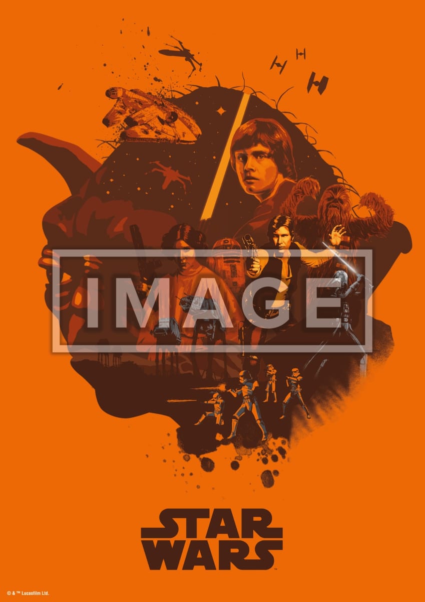 ジェダイマスター「ヨーダ」と共に「ルーク・スカイウォーカー」や「ハン・ソロ」などがプリントされたポスター