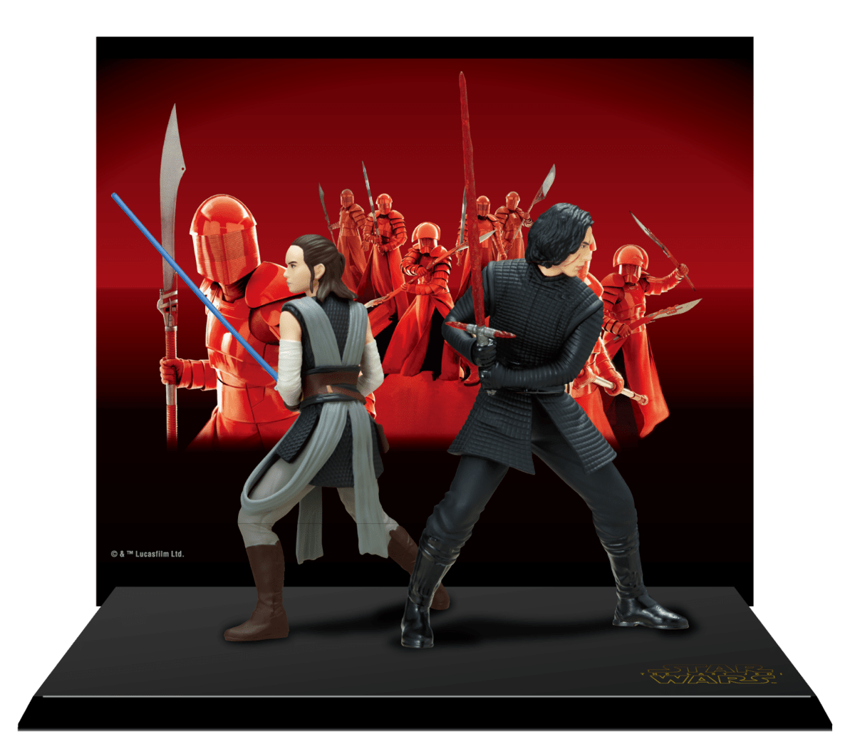 エリート・プレトリアン・ガード」をバックに背中合わせに戦闘態勢に入る「レイ」と「カイロ・レン」