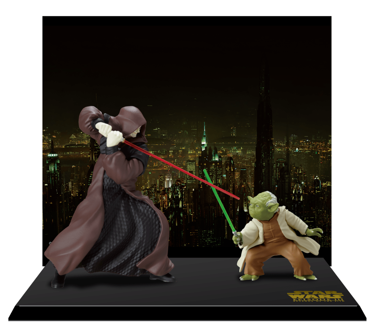 『スター・ウォーズ エピソード3/シスの復讐』にて激しいバトルシーンを繰り広げた「パルパティーン皇帝」と「ヨーダ」