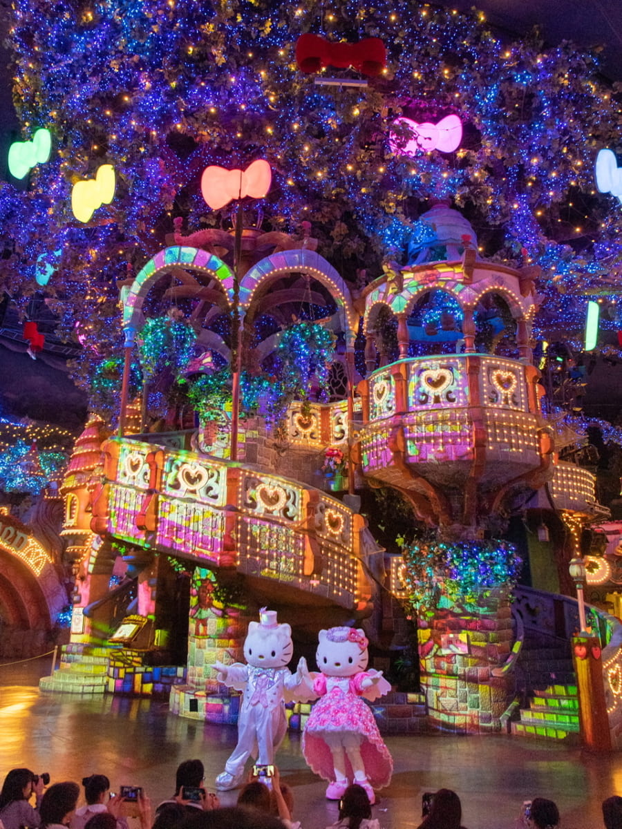 ハローキティが甘い歌声とともに光を操るイルミネーションショー。