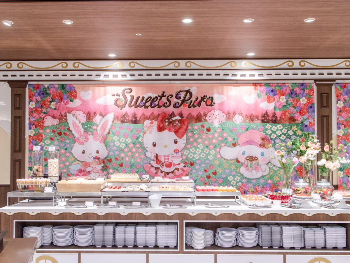 リニューアル後初のスイーツビュッフェで、おいしいデザートメニューやキャラクターたちのフォトセッションタイムが楽しめます。