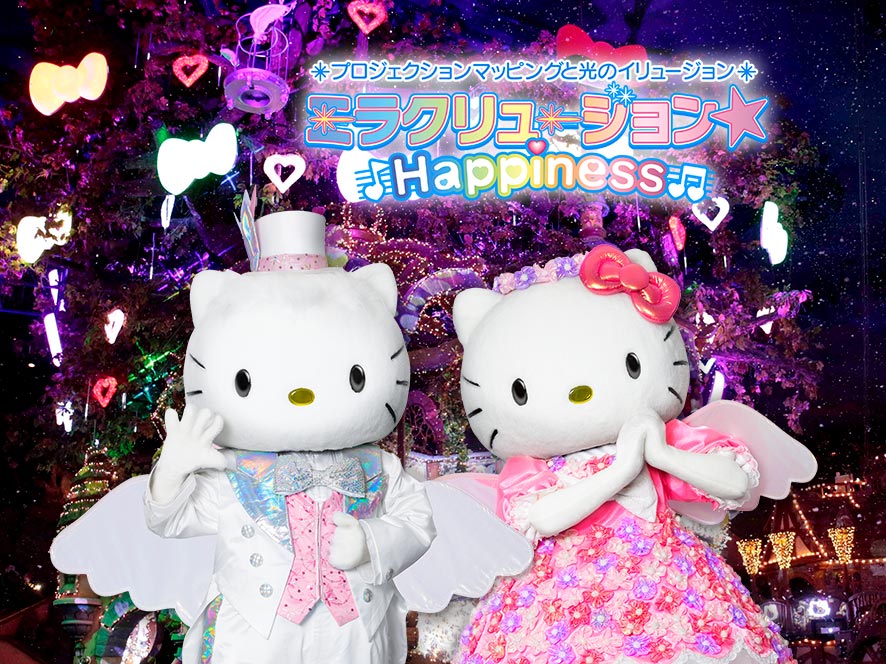 この期間限定の、エンジェルコスチュームを着たハローキティ&ディアダニエルが登場し、イルミネーションとプロジェクションマッピングの美しいコンビネーションに注目です。