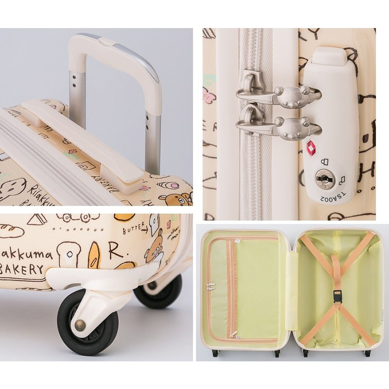 リラックマベーカリーのイラストが良く映える、ミルクのようなやさしいカラーのキャリーバッグです。