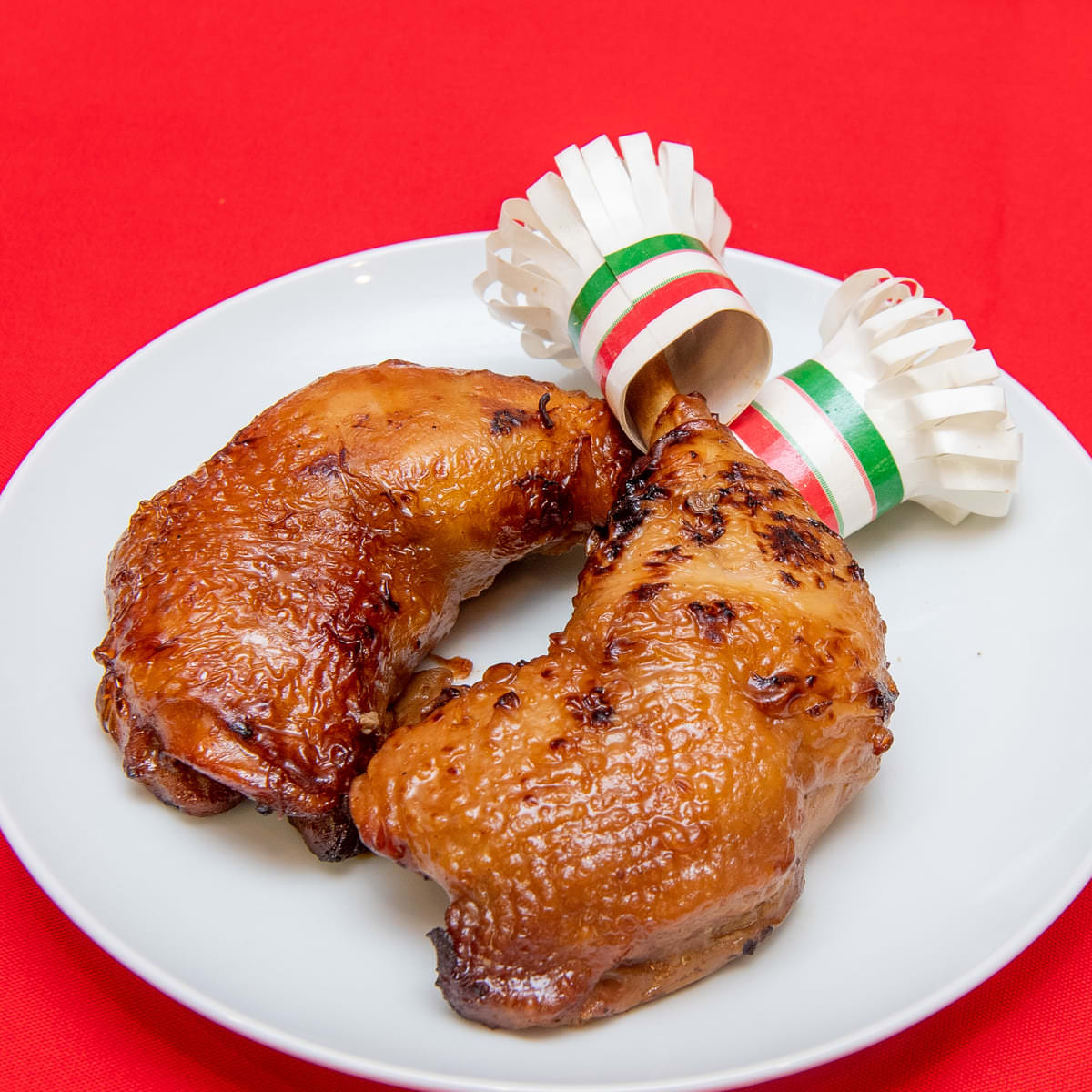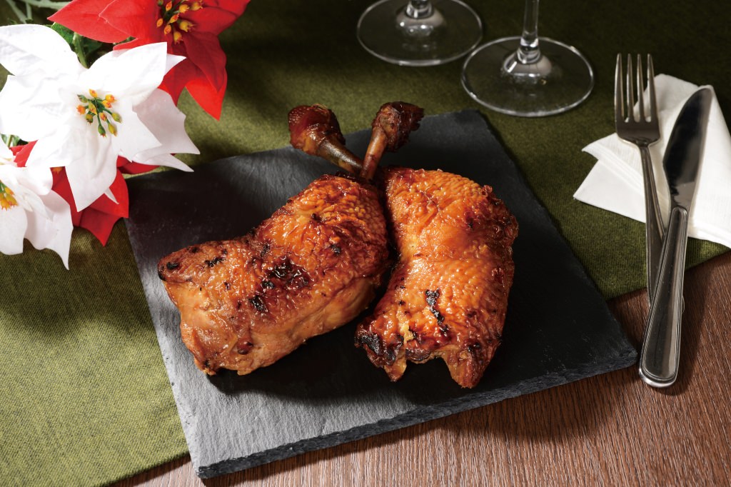 シンプルな照り焼きダレで味付けし、炭火で焼き上げたローストチキンです。