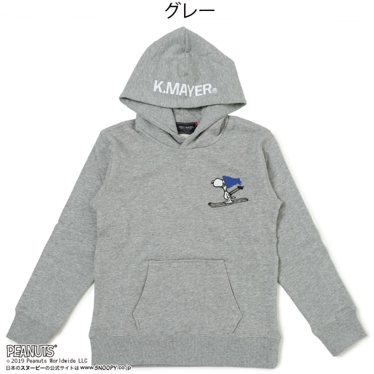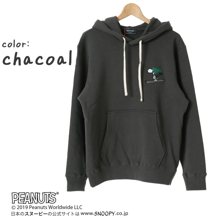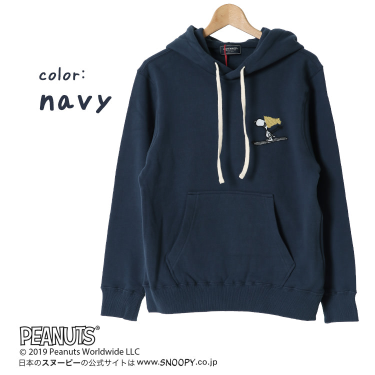 「スヌーピー」がスキーを楽しむグラフィックが可愛らしいプルオーバーパーカー。