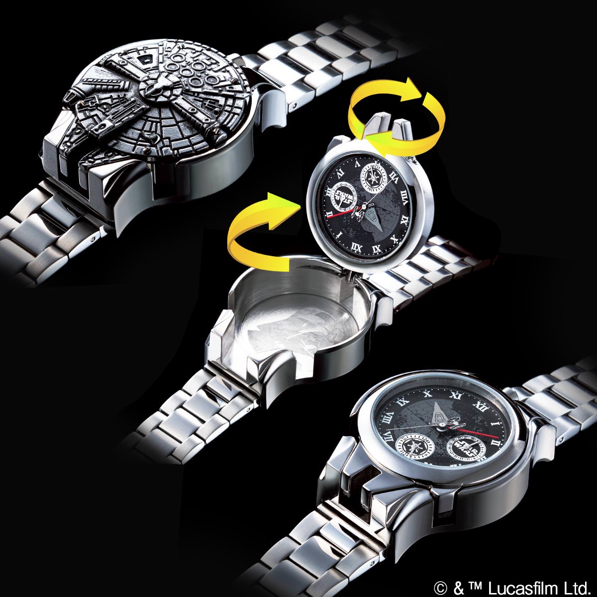 いぶし銀の重厚な躯体を回転すれば、帝国軍の最終兵器 デス・スターが闇の宇宙に浮かぶ、暗黒面の文字盤が出現します。