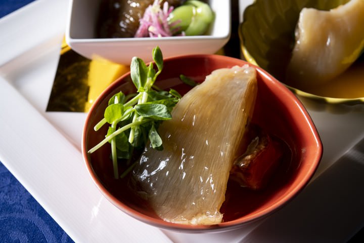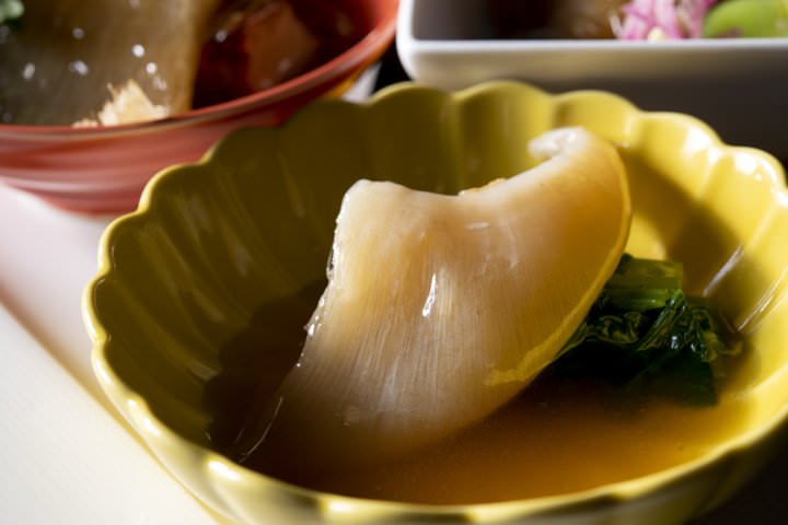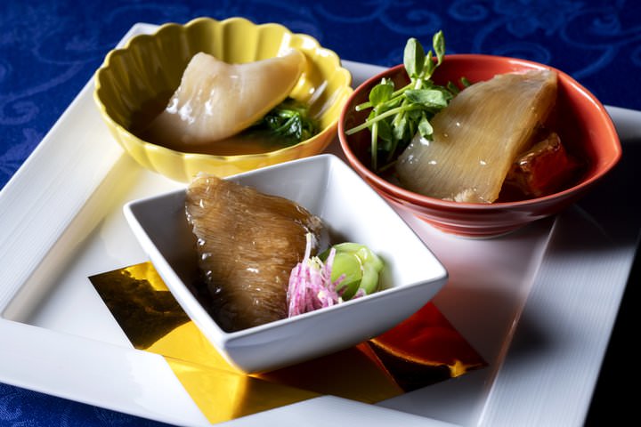・青鮫・毛鹿鮫・吉切鮫の三種ふかひれのオイスターソース餡かけ