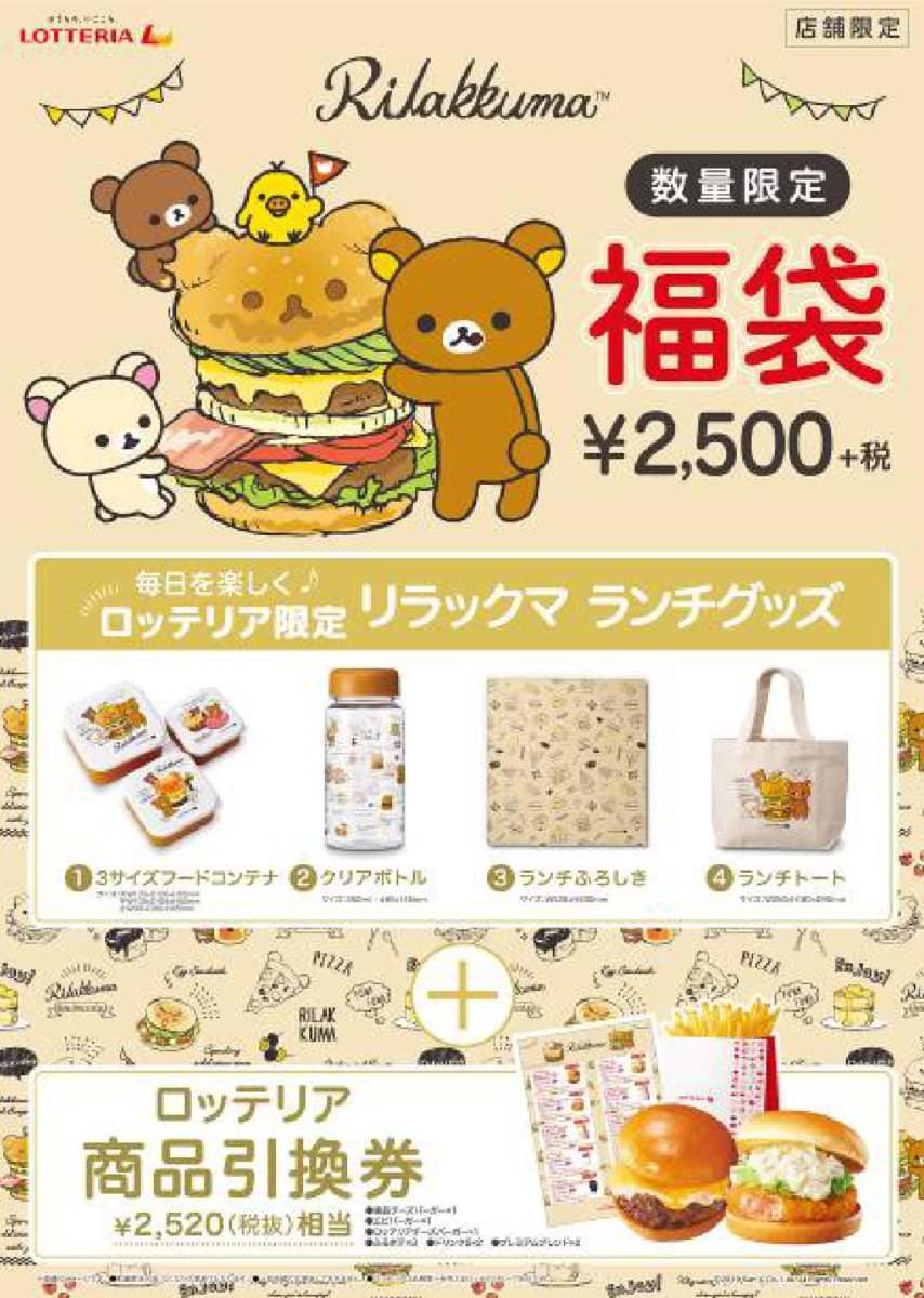 人気を博している福袋に「リラックマ」とコラボレーションしたロッテリアオリジナル「リラックマ福袋」が数量限定で販売されます☆