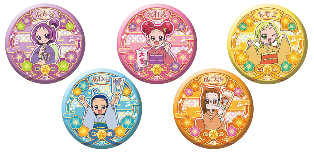 晴れ着を着た「春風どれみ」、「藤原はづき」、「妹尾あいこ」、「瀬川おんぷ」、「飛鳥ももこ」の5種類のデザインで、どれが当たるかは開けてからのお楽しみです☆