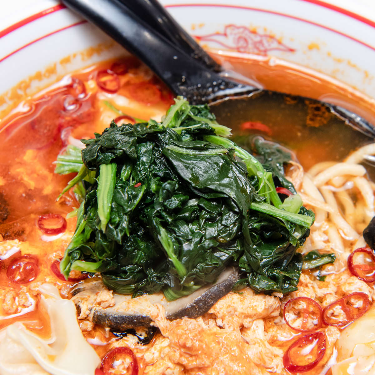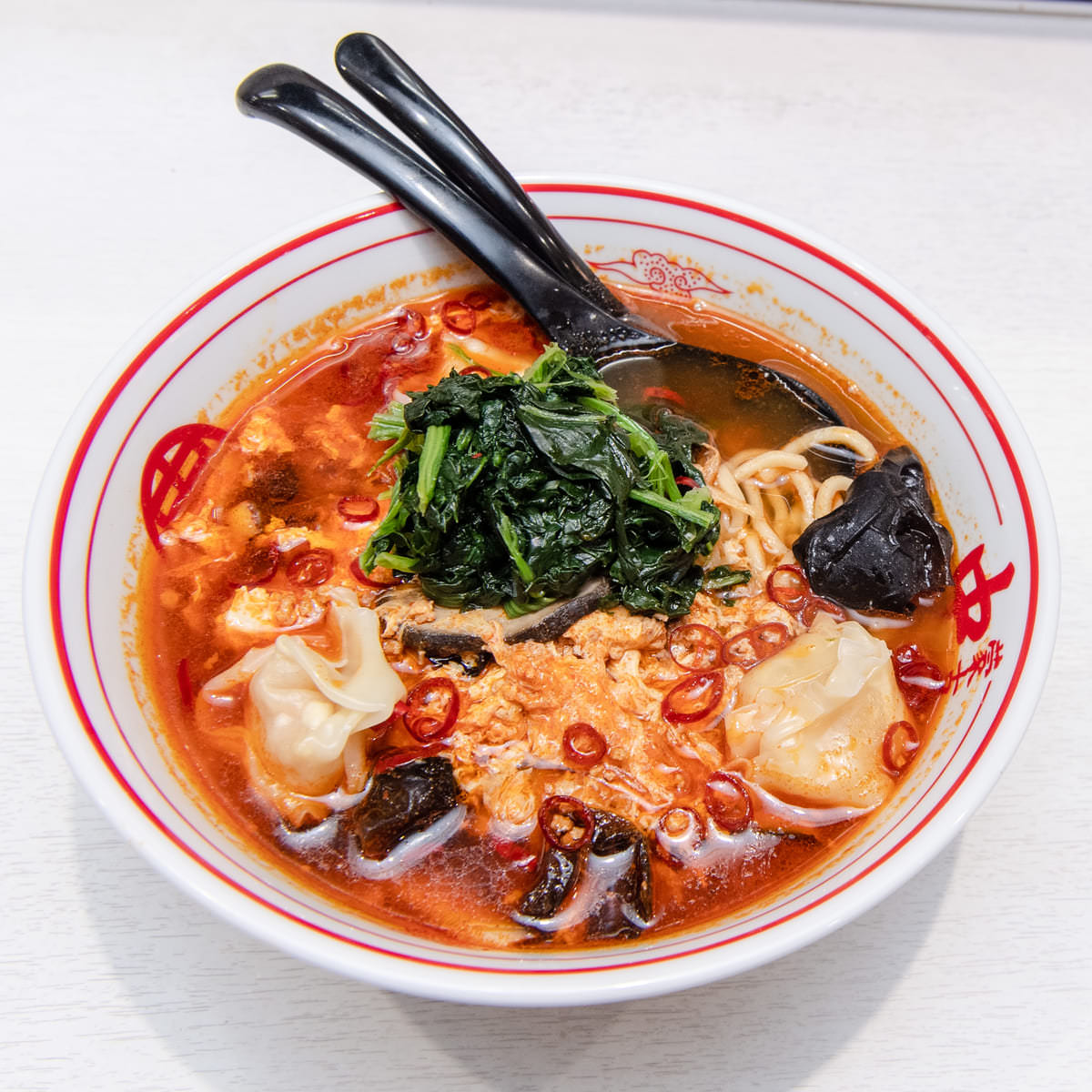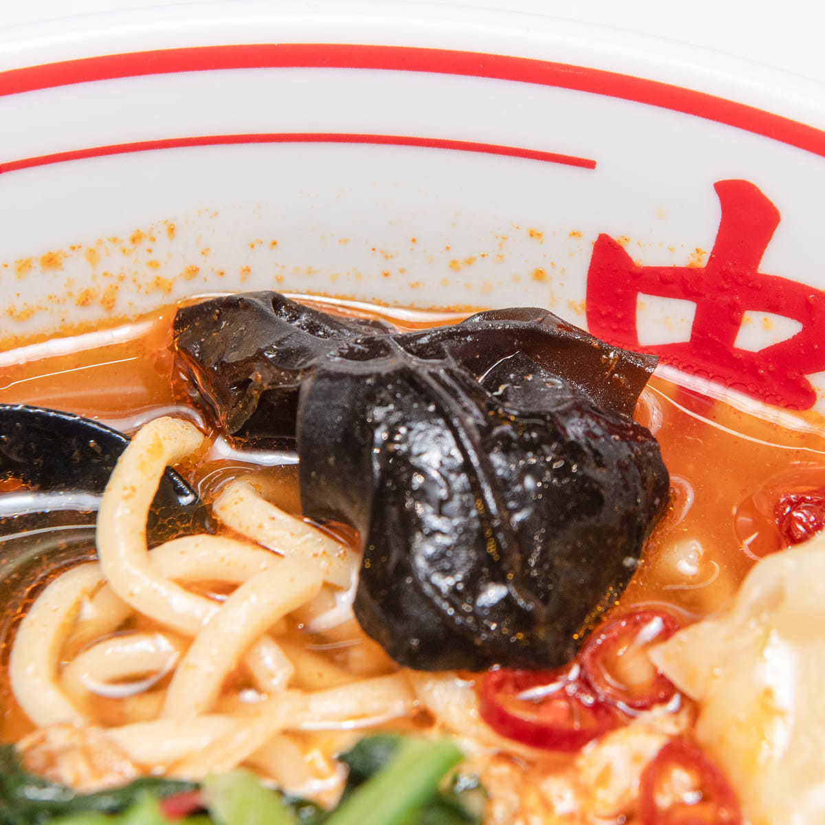 海老ワンタンで表現したダヴ&ホーク(白)、レイブン(紫)、スターファイヤー(赤)、など、豪華なトッピングが目を引く、個性豊かなヒーローたちを彷彿させる店主 白根氏渾身の一品です。