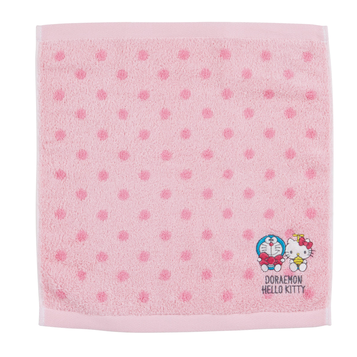 右下部に「ハローキティ」と「ドラえもん」がレイアウトされた「ハンドタオル」