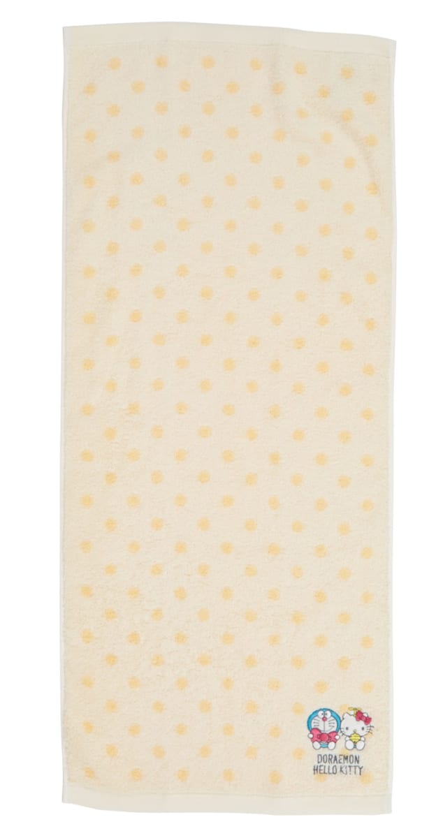「ハローキティ」と「ドラえもん」の刺しゅうがアクセントになった「フェイスタオル」