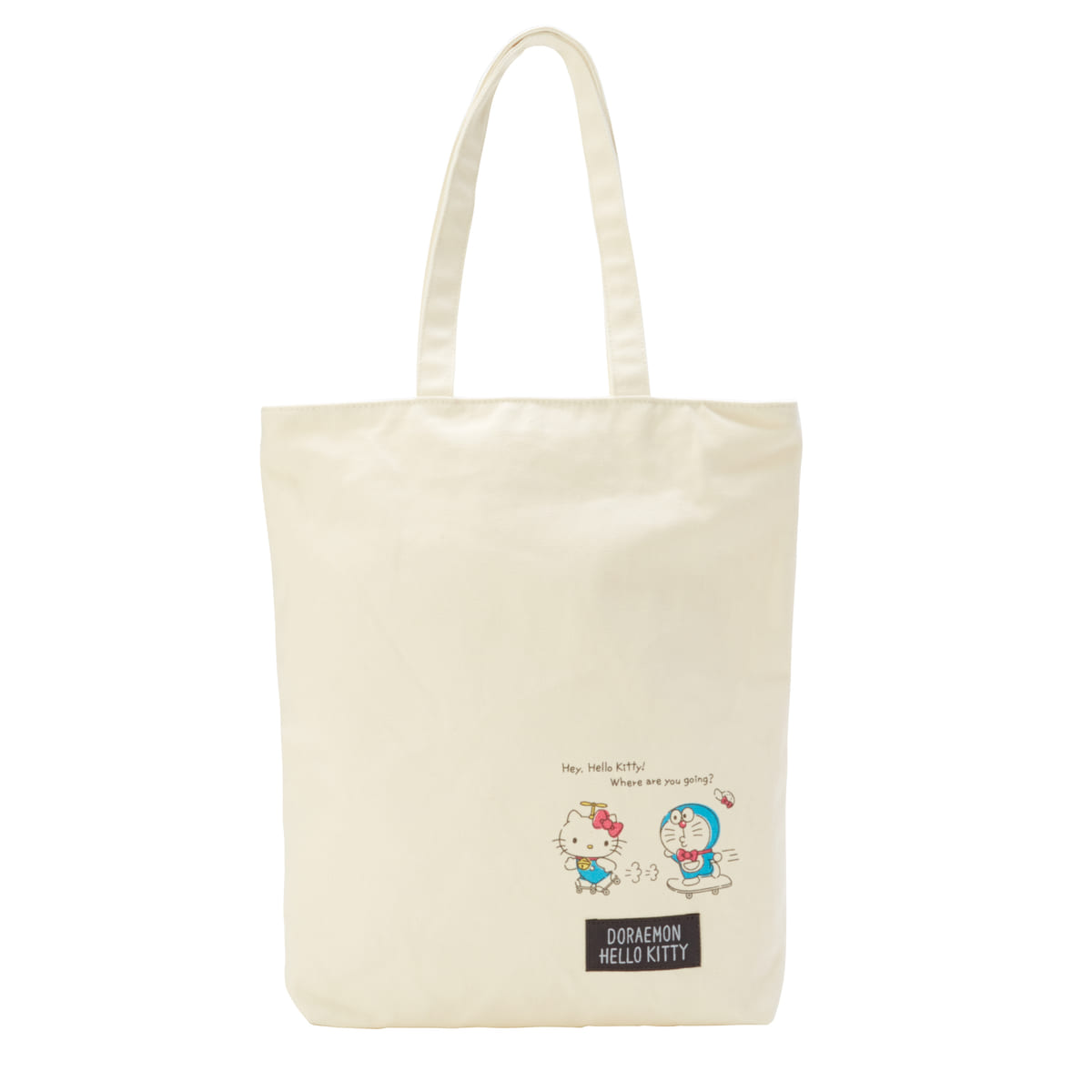 フロント右下部に「ハローキティ」と「ドラえもん」がスケートボードで仲良く遊ぶシーンがプリントされています。