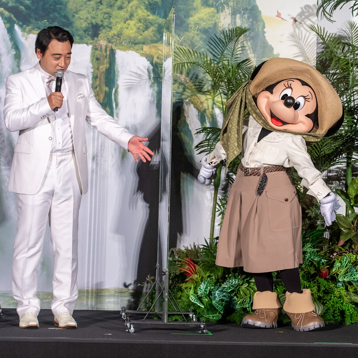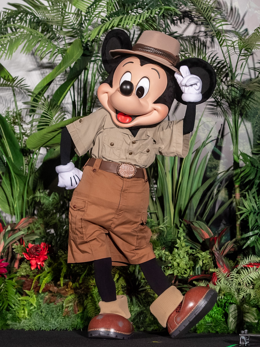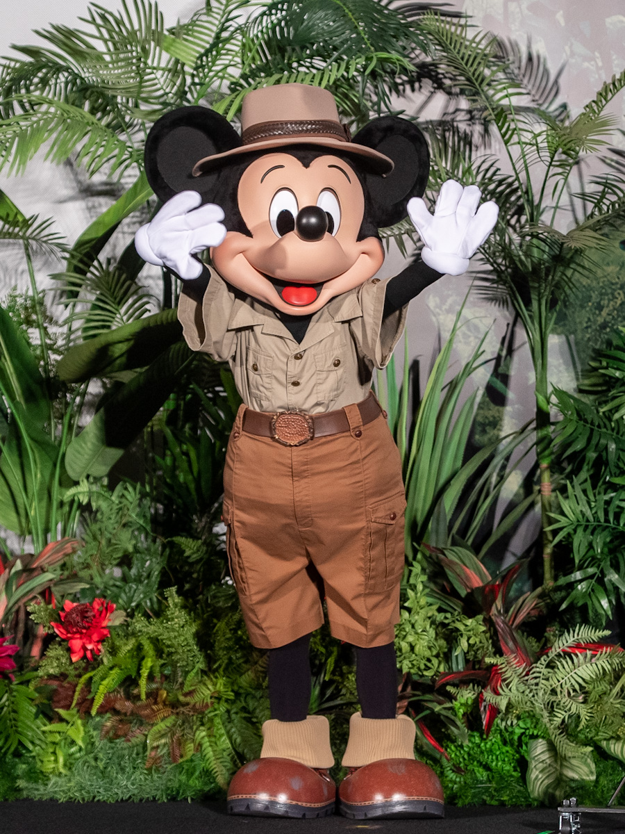 サファリルックのコスチュームを身にまとった「ミッキーマウス」はアースカラーの半袖、半ズボン。