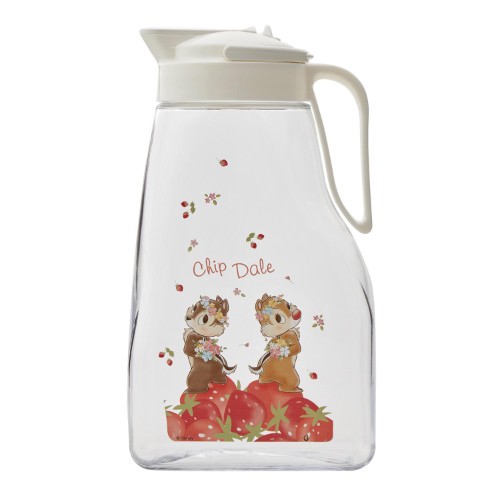 イチゴの上に乗っている「チップ&デール」デザインの冷水筒。