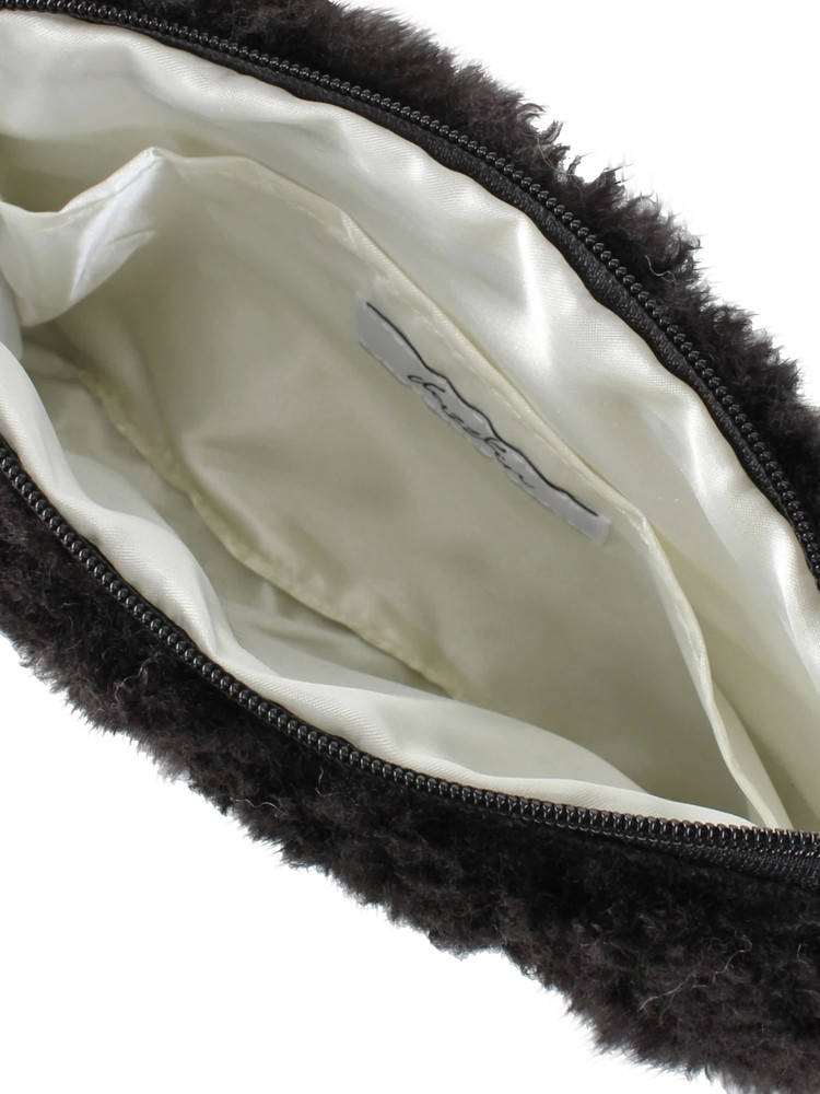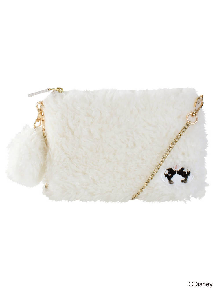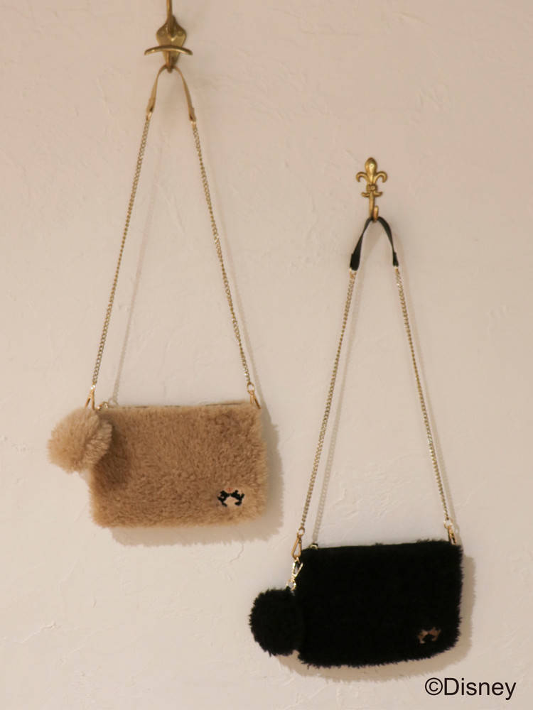 「ミッキーマウス」と「ミニーマウス」のキュートな刺繍ワッペンがポイントのファーポーチ。