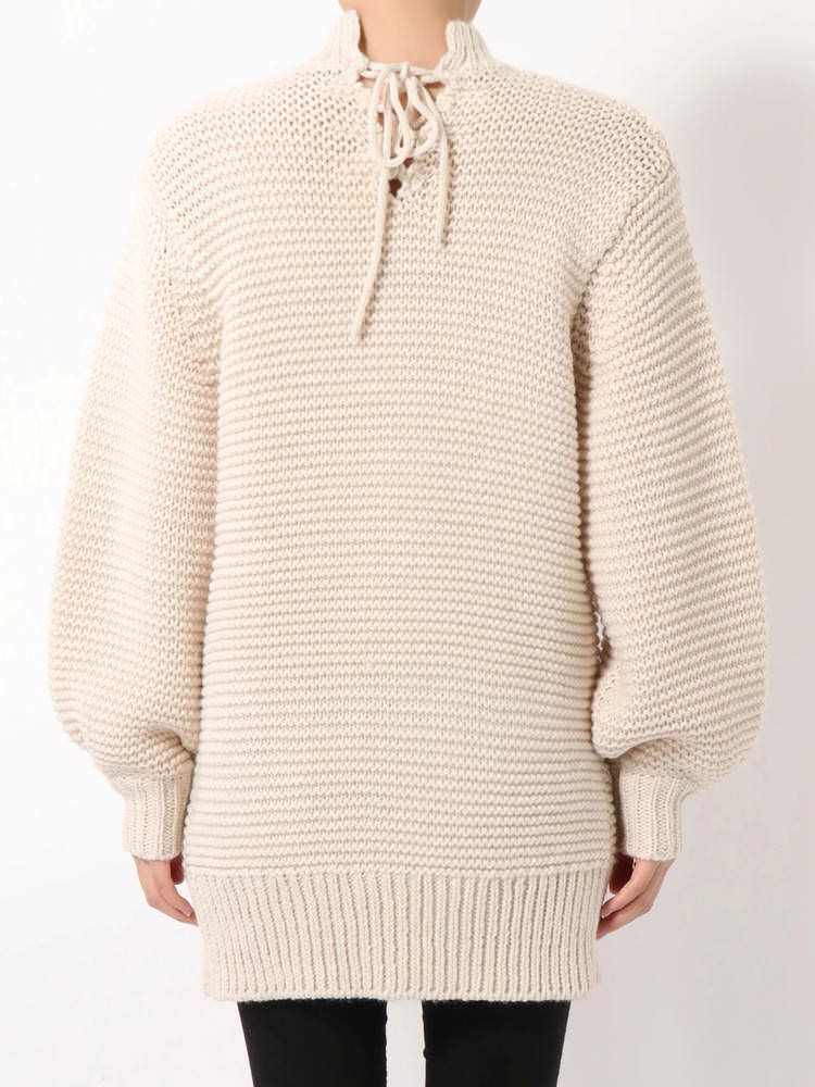シンプルながらふんわりとした袖やバック部分のレースアップデザインなど細かなディテールにもこだわりのつまった1枚です。