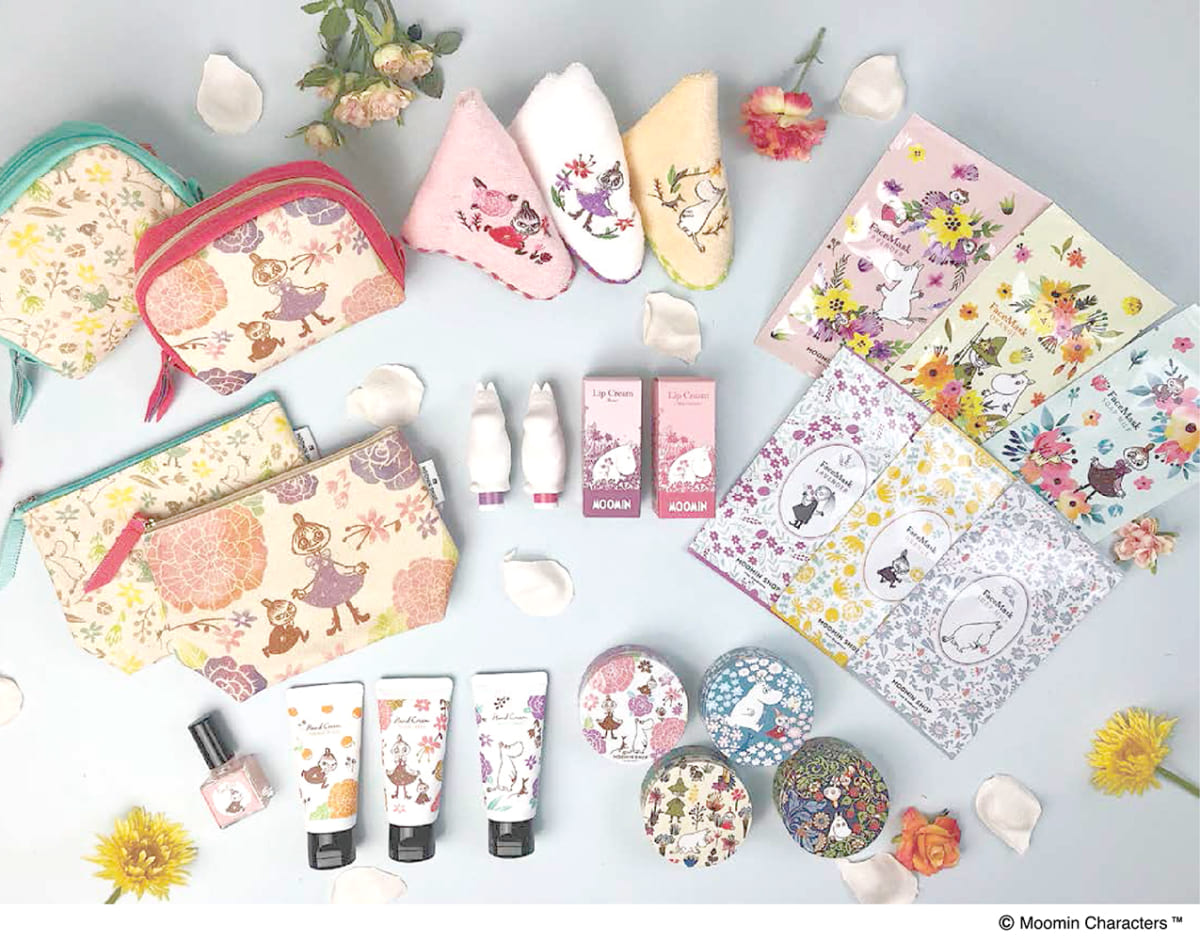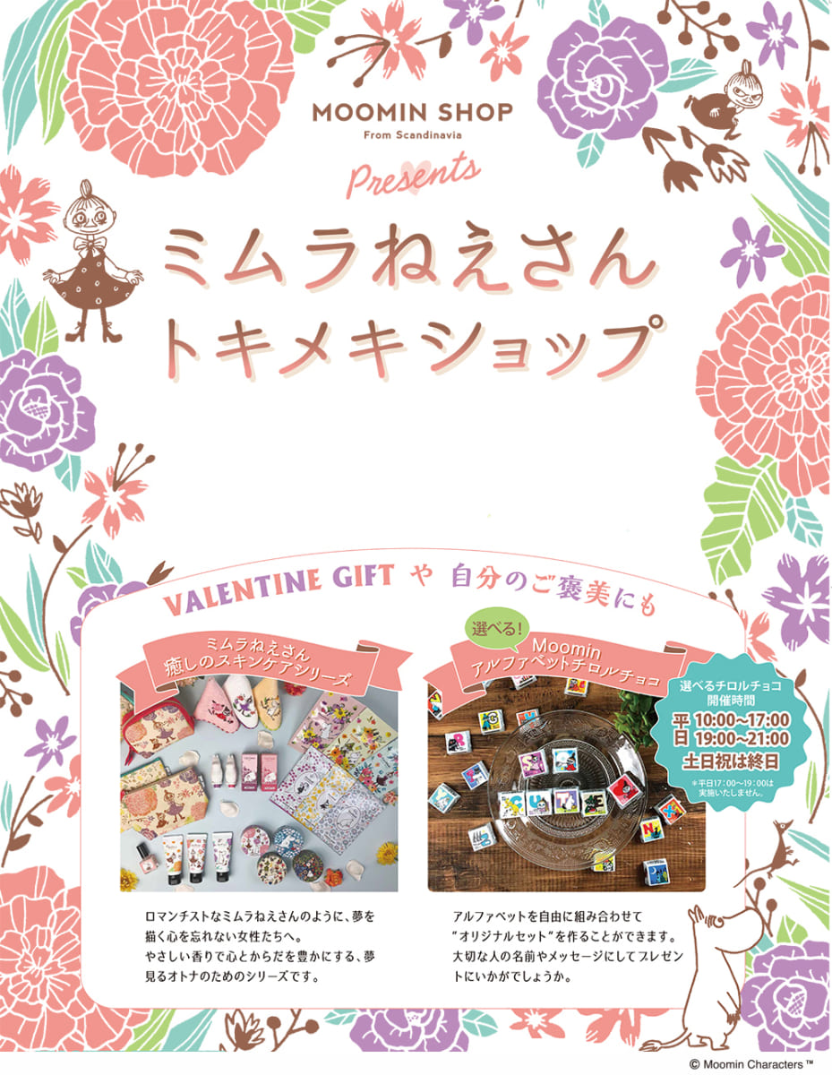 店内にはムーミンショップで大人気のコスメシリーズ、「ミムラねえさん 癒しのスキンケアシリーズ」ほか、自分へのご褒美やバレンタインギフトにぴったりのグッズが揃います。