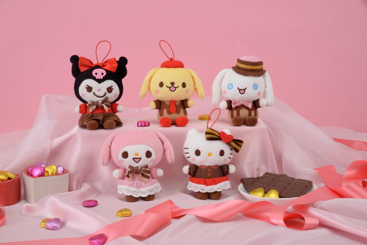 バレンタインをテーマにしたドレスでおめかししたサンリオキャラクターズのマスコット。