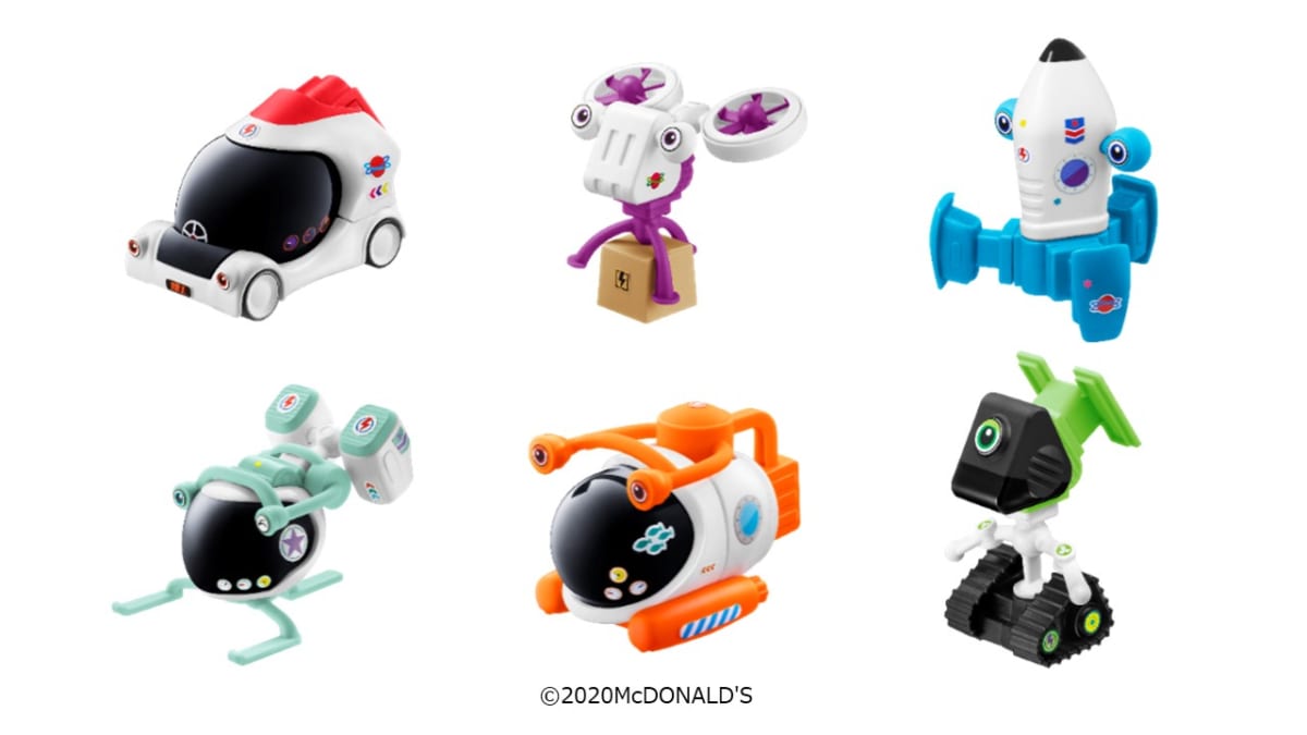 ハッピーセット「みらいののりものブロック」は、ブロックを組み立てて乗り物を作ることができるおもちゃ全6種が揃います。