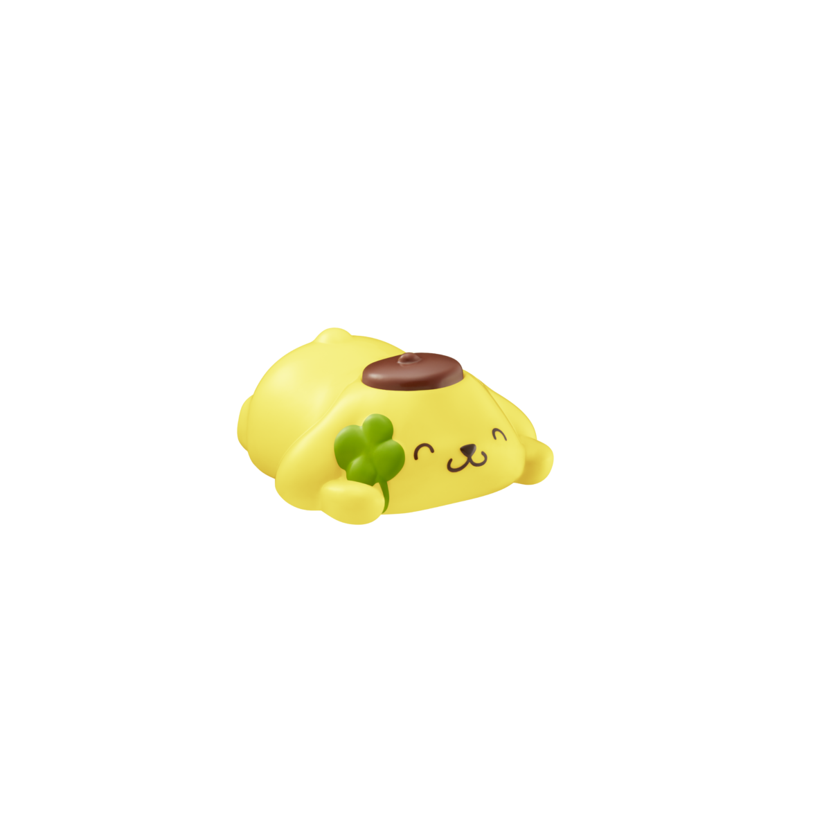 四つ葉のクローバーを片手に満面の笑みを浮かべるポーズが愛らしい「⾹る ポムポムプリン」