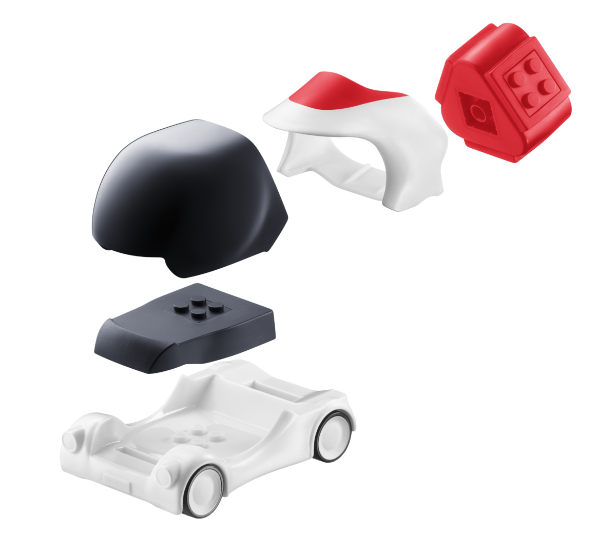 パーツを組み⽴てると、みらいをイメージしたくるまになる「みらいのくるま」
