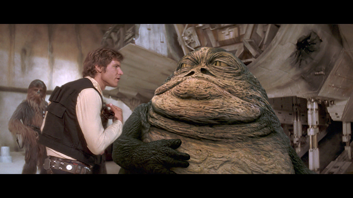 早速オルデランへ向かうため、船とパイロットを探していたルークとオビ=ワンは、宇宙港モス・アイズリーで密輸商人のアウトロー、ハン・ソロと相棒のチューバッカに出会います。
