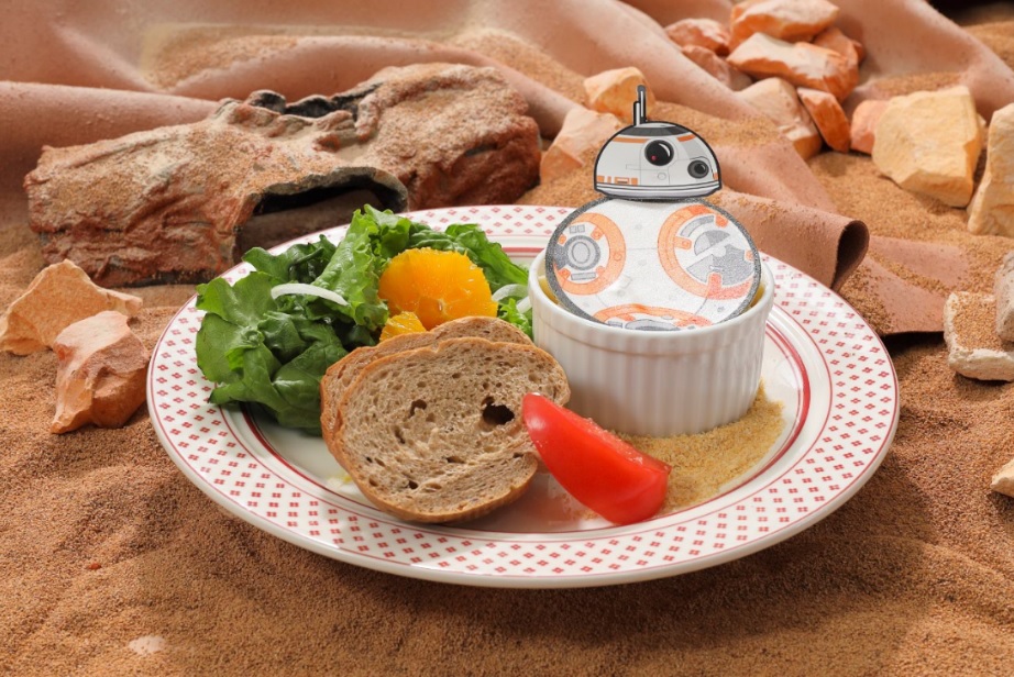 砂漠の上を走り抜けるBB-8をイメージしたメニュー。
