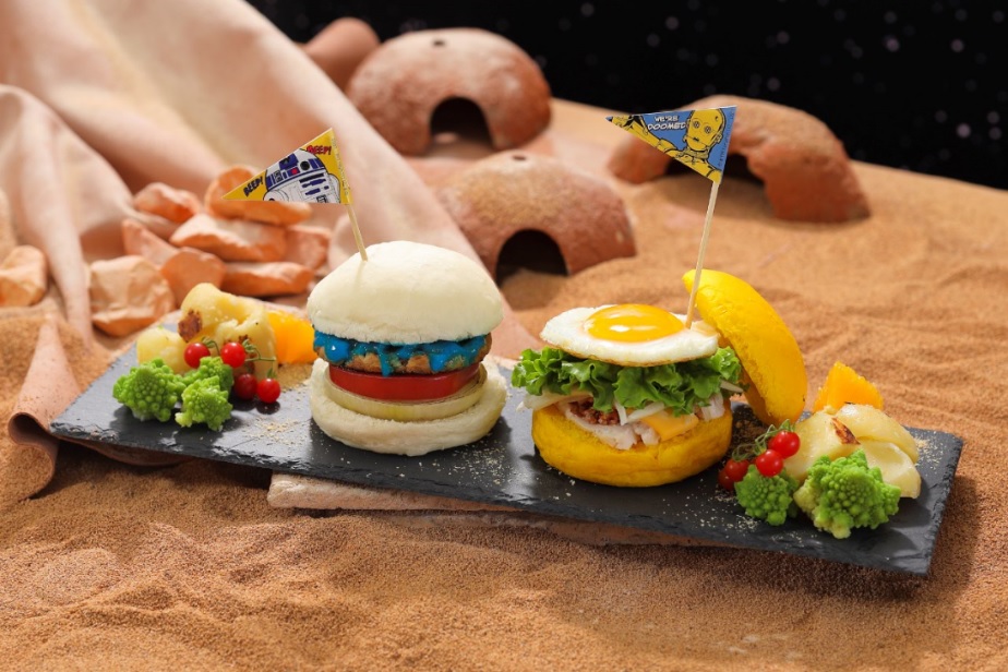R2-D2はベシャメルソース、C3-POはミートソースを挟んだチキンバーガー。