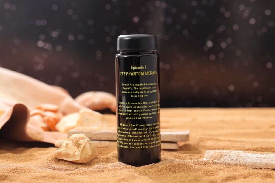 『スター・ウォーズ エピソード1/ファントム・メナス』から『スター・ウォーズ/最後のジェダイ』までのオープニングクロールを使用した、限定ボトルがついてくるブラックコーヒー。