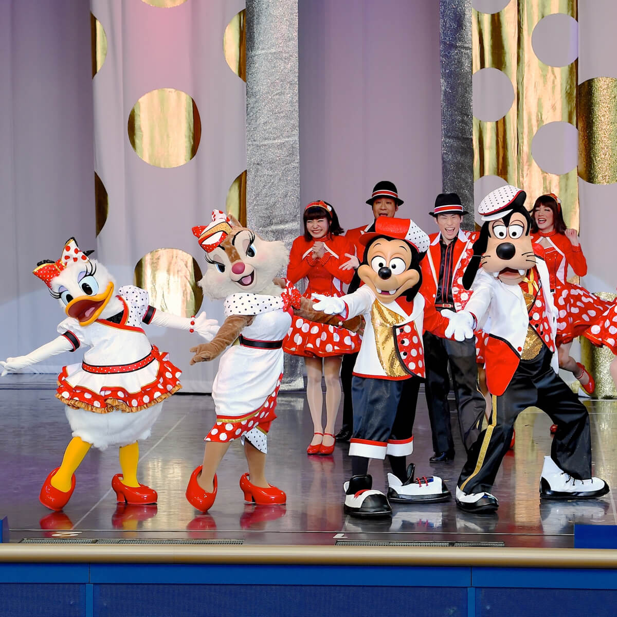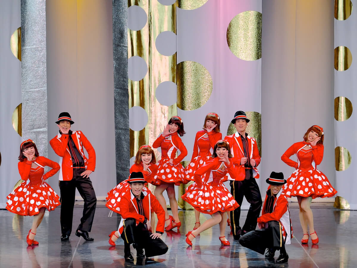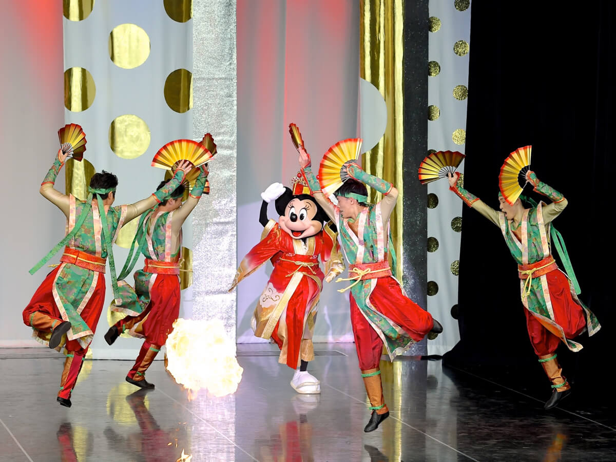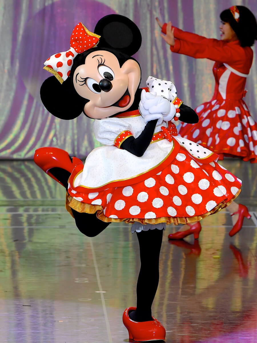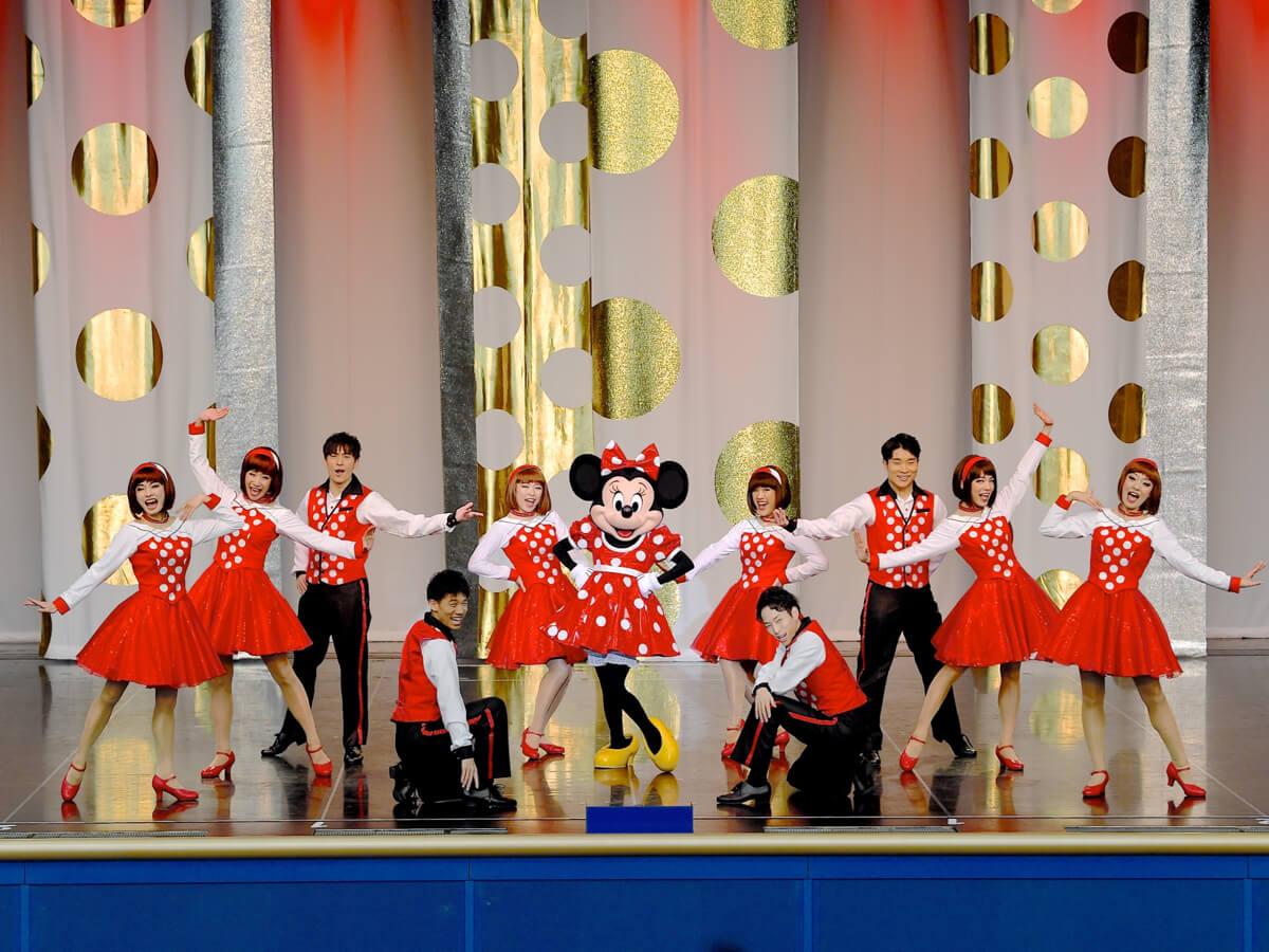 オープニングにはミニーマウスモチーフのドット柄ドレスを着たダンサーが登場し