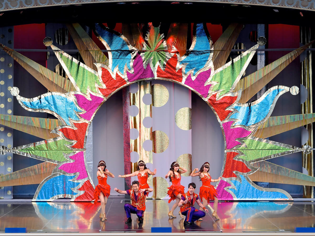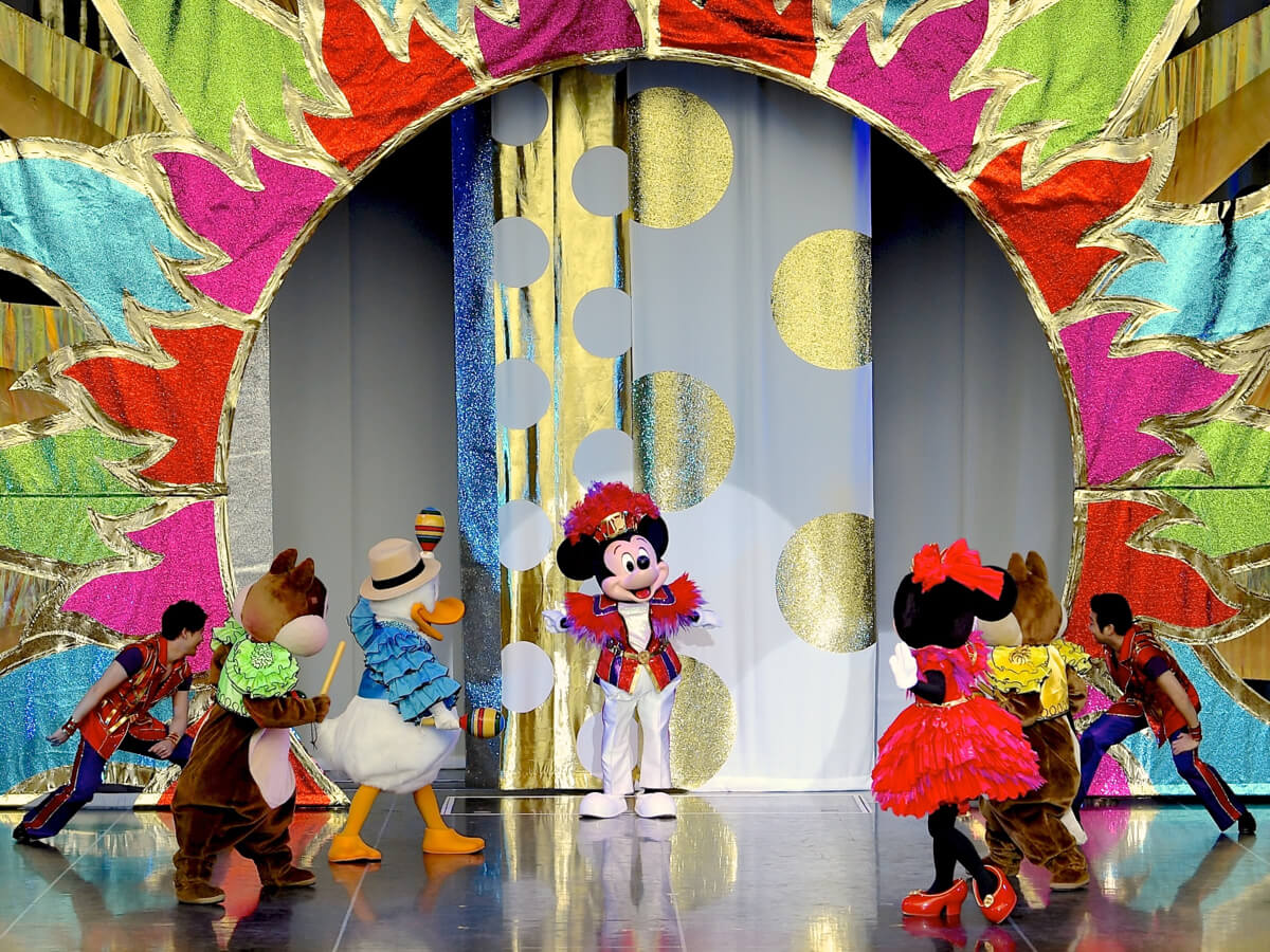 ラテンやロマンス、クラブなどのシーンに合わせ、これまで東京ディズニーランドや東京ディズニーシーの両パークを彩ってきたエンターテイメントの音楽やコスチュームとともに、さまざまなスタイルを披露します。