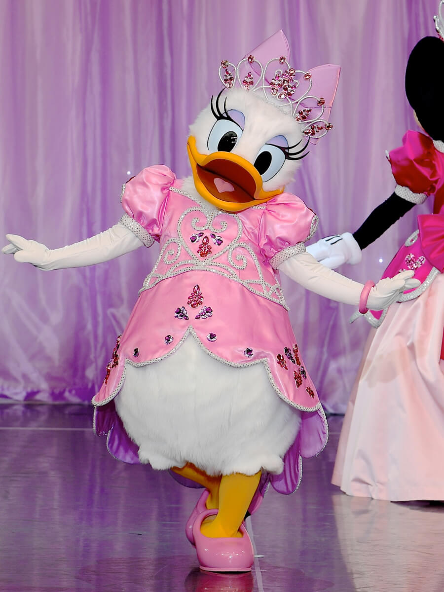 続いて、「ロマンススタイル」のシーンは、東京ディズニーランドにて2007年に開催された『ミニーのプリンセスグリーティング』の華やかなコスチュームで「デイジーダック」