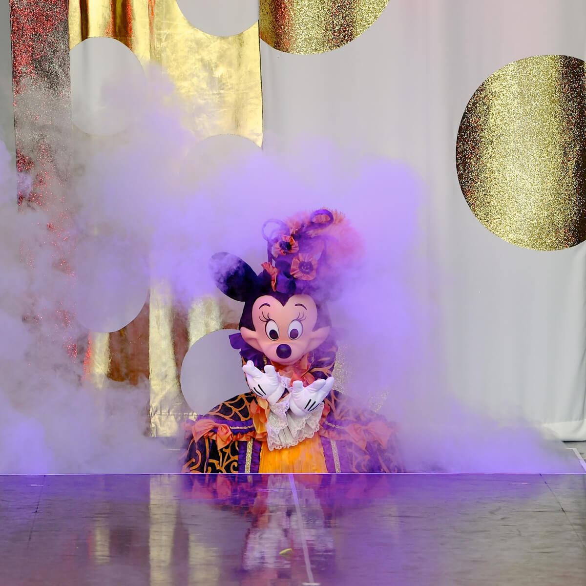 「ドリームカンパニー」の看板女優「ミニーマウス」の金色に輝くコスチューム。