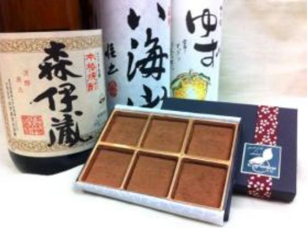 芋焼酎『森伊蔵』、日本酒『八海山』、果実酒『ゆず酒』の3種が使用された、お得なアソートセットの生チョコレートです☆